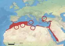 Selon The Reptile Database (21 mai 2013)[2], cette espèce est autochtone en Afrique du Nord (au Maroc, en Algérie, en Tunisie, en Libye et en Égypte), au Proche-Orient (en Israël, en Palestine, au Liban, en Syrie, dans le sud de la Turquie, en Irak, en Iran, en Jordanie, en Arabie saoudite et au Yémen) et dans certains pays du sud de l'Europe (sud du Portugal, sud de l'Espagne, à Malte, en Grèce (Crète) et à Chypre). En Italie, l'espèce est présente dans le Sud de la Calabre, où elle est allochtone[3]. Son statut en Sicile est quelque peu incertain : bien que ce caméléon ait longtemps été cité dans les faunes siciliennes, où il a un temps été introduit et noté sur l'île dès 1832, il semble ne pas avoir perduré, et seuls quelques signalements sporadiques sont recensés vers la fin du XXe siècle[4].