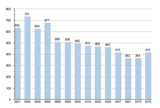- Sources : INS, Rem. : 1831 jusqu'en 1970 = recensements, 1976 = nombre d'habitants au 31 décembre.