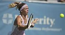 Elle enchaîne avec un décevant premier tour à Anvers et un second tour à Dubaï, chaque fois stoppée par l'Espagnole Carla Suárez Navarro (17e joueuse mondiale) qu'elle a pourtant battue en avril 2014 sur la même surface lors de son beau tournoi de Katowice. Elle est ensuite battue dès son entrée en lice au tournoi d'Indian Wells. Elle chute logiquement de quelques places au classement WTA, où elle pointe à la 37e place. Elle fait ensuite un parcours moyen à Miami (3e tour, logiquement battue par Simona Halep, no 3, 6-4, 7-5). Après un excellent parcours à Katowice, où elle écarte notamment Agnieszka Radwańska, tête de série no 1 et no 9 au classement WTA, en demi-finale (6-4, 6-2), elle s'incline en finale, battue par la Slovaque Anna Schmiedlová, pourtant seulement 67e joueuse mondiale (6-4, 6-3). Cela ne la fait pas beaucoup progresser au classement car elle était déjà finaliste l'an passé. Elle est ensuite logiquement battue par Serena Williams en match de barrage de la Fed Cup. Elle fait une médiocre saison sur terre battue, puisqu'elle perd dès le premier tour aux tournois de Madrid et de Rome. Elle ne passe ensuite qu'un seul tour à Roland-Garros. Elle commence par contre la saison sur gazon sur les chapeaux de roue puisqu'elle acquiert son premier titre sur le circuit WTA à Bois-le-Duc en battant en finale la Suissesse Belinda Bencic (7-5, 6-3)[9]. Elle passe deux tours à Eastbourne et atteint le troisième tour à Wimbledon. Elle est stoppée par Caroline Wozniacki (no 5) sur le score sévère de 6-2, 6-2.