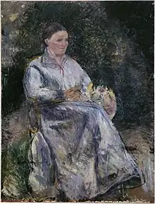 Outre les scènes rustiques et quotidiennes du paysage rural français, il peint fréquemment des femmes absorbées par les activités quotidiennes. En effet, à partir de 1879, il commence à créer un certain nombre d'études de figures monumentales qui reflètent son intérêt croissant pour la primauté de la forme humaine dans le paysage, un thème qui se poursuivra tout au long de sa carrière. C'est ainsi que Femme lavant une casserole, ainsi que La Cardeuse de laine (National Gallery)[52] sont présentées à la cinquième Exposition Impressionniste en 1880[53].