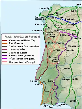 Le Camino portugués (portugais : Caminho Português, galicien : Camiño Portugués ou « chemin portugais » en français) est le nom de plusieurs itinéraires du pèlerinage de Saint-Jacques-de-Compostelle qui commencent au Portugal. Deux points de départ principaux sont Lisbonne (610 km jusqu'à Saint-Jacques-de-Compostelle) et Porto (227 km jusqu'à Saint-Jacques-de-Compostelle). Le Camino portugués est le deuxième itinéraire le plus populaire après le Camino francés (20,72% de tous les pèlerins en 2018, selon le Bureau d'Accueil des Pèlerins de la Cathédrale de Saint-Jacques-de-Compostelle[1].