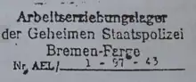 - (de) Cet article est partiellement ou en totalité issu de l’article de Wikipédia en allemand intitulé « Arbeitserziehungslager Farge » (voir la liste des auteurs).
