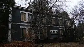 En 1938, quelques années après la construction du bâtiment des troupes, le camp se voit doter d’un nouveau bâtiment destiné au logement des officiers supérieurs. Situé à l’écart, il se distingue par son enduit granuleux noir, tranchant avec le blanc des encadrements, chaînages et bandeaux