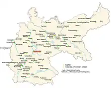 Le camp de prisonniers (Kriegsgefangenenlager) était situé à environ 3 km au nord-est de la ville, en direction du village de Merxleben, dans le fond d’une cuvette argileuse environnée de collines. Il occupait une surface de 25 hectares entourés de barbelés et souvent boueux, il était relié à la ville par une petite voie ferrée[1].
