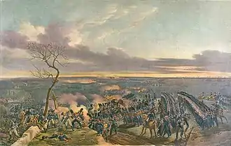 Le 30 mars, Paris est attaquée par Pantin et Romainville (Schwarzenberg) et par Clichy et Montmartre (Blücher). À la barrière de Clichy, défendue par Moncey qui commande la Garde nationale, a lieu la bataille la plus importante. Dans la soirée, les négociations sont ouvertes et dans la nuit, Marmont, avec la médiation de Talleyrand, signe un armistice : les troupes françaises évacuent Paris en direction du sud.