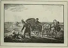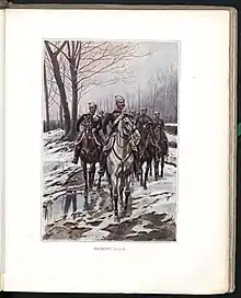 Interception d'un convoi français par la cavalerie russe, carte postale de Boris Zvorykine, 1917.