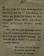 À la fin de mars, avec l'incorporation de la Landwehr, la Prusse a 132 000 hommes sous les armes[9]. L'enthousiasme patriotique touche inégalement les classes de la société : les étudiants (2% de la population) représentent 14% des volontaires, les artisans (7% de la population) en font 41%, tandis que les paysans (les trois quarts de la population) ne font que 18%. Une collecte d'argent, connue sous la formule « De l'or contre du fer » (en allemand : « Gold gab ich für Eisen (de) »), permet de réunir 6,5 millions de thalers. Les femmes de la famille royale encouragent les Allemandes à soutenir l'armée par leurs dons et leur travail. Les Juifs, récemment affranchis par le décret du , apportent une grosse contribution financière et, pour la première fois, sont admis à s'enrôler dans l'armée[84].