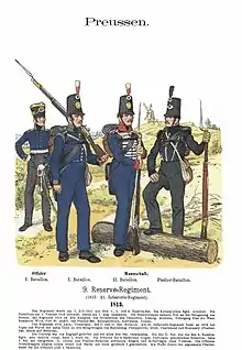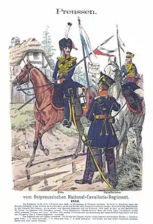 Après l'écrasante défaite de 1806, la Prusse, amputée de vastes territoires et chargée de contributions, songe à la revanche. Les réformes prussiennes, menées entre 1807 et 1812 par Scharnhorst et Gneisenau, visent à rendre sa puissance à l'armée prussienne : création d'une Académie de guerre, organisation en brigades associant infanterie, cavalerie et artillerie, règlement militaire de 1812 qui prévoit l'entraînement au combat en tirailleur. Le roi Frédéric-Guillaume, craignant une rupture avec Napoléon, exile les réformateurs mais poursuit leur œuvre. En 1812, il accepte l'envoi d'un corps de renfort prussien dans la campagne de Russie. En janvier 1813, il désavoue l'armistice de Tauroggen signé par Yorck le 30 décembre 1812[69]. Cependant, l'opinion prussienne est sensible aux appels lancés depuis Saint-Pétersbourg par les exilés allemands anti-napoléoniens ; le 29 décembre, les états de Prusse demandent au roi, sans succès, de faire la paix avec la Russie. Yorck rentre en province de Prusse-Orientale avec l'armée russe et, le , les états provinciaux à Königsberg le reconnaissent comme gouverneur des « territoires libérés ». Le 8 février, la petite garnison française de Pillau, dernière ville occupée dans la province, doit se rendre après la défection de ses auxiliaires prussiens[70]. Le lendemain, les états provinciaux votent la création d'une Landwehr[71].