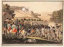 Le , l'administration française évacue Varsovie avec l'ambassadeur Édouard Bignon qui a remplacé l'archevêque Pradt ; les Russes de Miloradovitch y entrent sans combat le 8 février[52]. La forteresse de Modlin reste encerclée par les Russes, bien approvisionnée, avec une garnison de 4 000 Polonais, 600 Français et 600 Saxons[6].