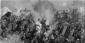 Ainsi, le , à l'issue d'une solide préparation d'artillerie, Potiorek relance ses unités à l'assaut des positions serbes, les repoussant à 70 kilomètres de leurs positions de départ, au-delà de la Kolubara[14]. Les premières lignes serbes sont ainsi rapidement dépassées[27] ; en dépit de ces succès initiaux, cette offensive est menée cependant dans des conditions climatiques difficiles, aggravées par les pénuries alimentaires et vestimentaires qui frappent l'armée austro-hongroise[28]