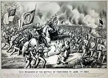 Alors que l'armée de McClellan atteignait la périphérie de Richmond, une petite bataille eut lieu à Hanover Court House, mais elle fut suivie par une attaque surprise de Johnston dans la bataille de Seven Pines ou Fair Oaks. Cette bataille ne fut pas décisive, provoqua de lourdes pertes, mais eut des effets durables sur la campagne. Johnston fut blessé et remplacé le par le plus agressif Robert E. Lee, qui réorganisa son armée et prépara une action offensive dans les dernières batailles du au , plus connues sous le nom de la bataille des Sept Jours.