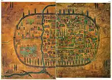 ![]() Carte de Tabriz au XVIe siècle, par Nasuh el-Silâhî. |