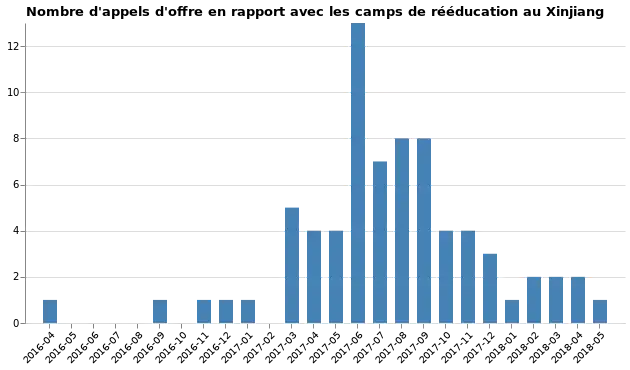 En septembre 2017, Radio Free Asia devient le premier organe de presse de langue anglaise à dévoiler l'existence des camps de rééducation au Xinjiang[21],[22].