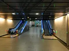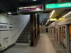 La station a été réalisée par le groupement Casalta - Gorget - Harter (atelier CACTUS). Elle possède de nombreuses galeries de liaison souterraine par rapport aux autres stations de la ligne. L'œuvre d'art qui est présente sur cette station est un ensemble de quatre sculptures monumentales de l'artiste Daniel Pommereulle. Son œuvre utilise les matériaux suivants : verre, cuivre, porcelaine, ardoise, bronze et marbre rouge[3]. Les tranches de verre rappellent l'eau du canal qui se trouve au-dessus de la station.