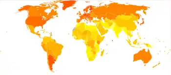 Une légère diminution de l'incidence et de la mortalité est notée dans les pays du nord de l'Europe entre 1971 et 2000 en ce qui concerne les hommes (mais reste stable chez les femmes)[10].