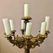 Par analogie de forme avec le chandelier, le candélabre désigne un motif ornemental fait de divers éléments (vases, masques, palmettes, feuillages, rinceaux, objets divers…) superposés symétriquement le long d'un axe vertical. Ce motif ascendant est courant dans le style Renaissance[1].