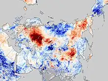 Environ 10 millions d'hectares de culture sont détruits par la sécheresse en Russie, soit 20 % de la surface cultivable du pays[14]. Cette catastrophe a des conséquences sur l'économie mondiale (hausse du prix du blé et effets induits).