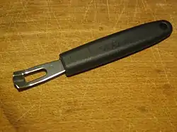 Un canneleur est un ustensile de cuisine utilisé en cuisine et dans les laboratoires de pâtisseries et de boulangeries pour décorer les plats avec des fruits ou des légumes.