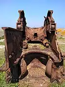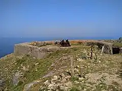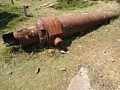 - Restes d'un des six canons de 194 mm sur l'île de Cézembre (France), détruit par les bombardements alliés en août 1944.