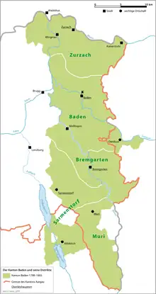 Le canton de Baden recouvrait les territoires suivants :