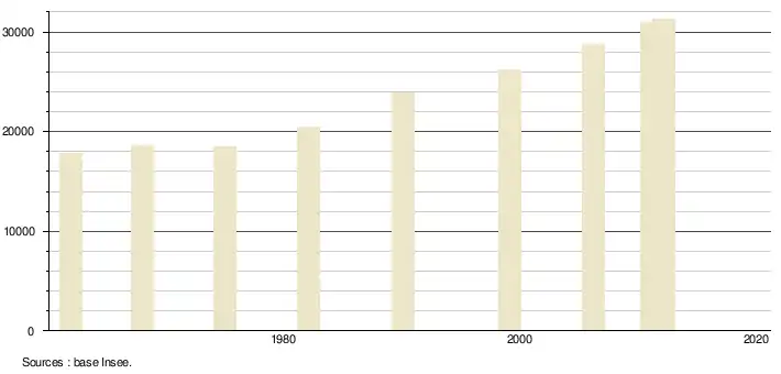 - Population municipale légale en vigueur au 1er janvier 2024, millésimée 2021, définie dans les limites territoriales en vigueur au 1er janvier 2023, date de référence statistique : 1er janvier 2021.