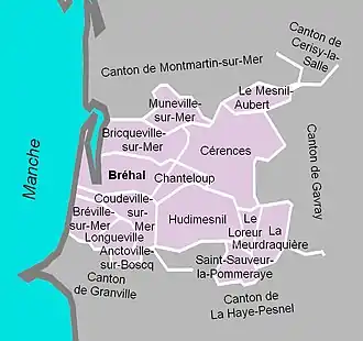 À la suite du redécoupage des cantons pour 2015, toutes les communes sont à nouveau rattachées au canton de Bréhal auquel s'ajoutent deux communes du canton de Granville et quatorze du canton de La Haye-Pesnel.