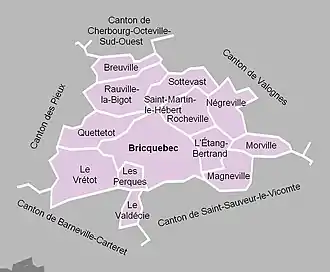 À la suite du redécoupage des cantons pour 2015, toutes les communes sont à nouveau rattachées au canton de Bricquebec auquel s'ajoutent les dix-neuf communes du canton de Saint-Sauveur-le-Vicomte.