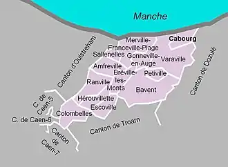 Situation du canton de Cabourg dans le département du Calvados. | |