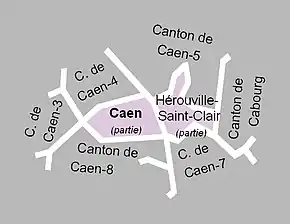 Celui-ci est constitué d'une partie de la ville d'Hérouville-Saint-Clair et d'une partie de la ville de Caen. Caen en est le chef-lieu[3].