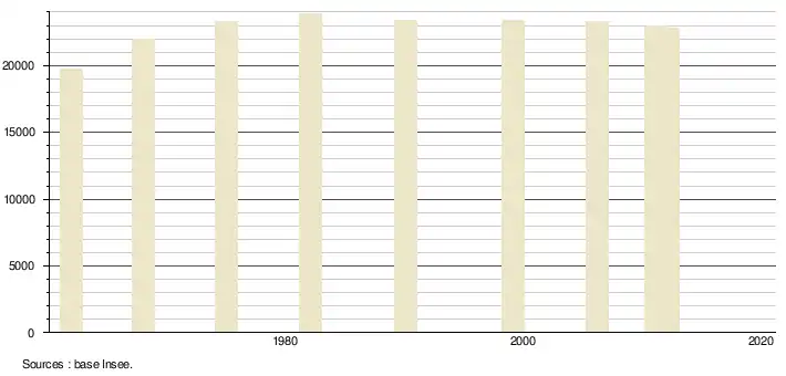 - Population municipale légale en vigueur au 1er janvier 2024, millésimée 2021, définie dans les limites territoriales en vigueur au 1er janvier 2023, date de référence statistique : 1er janvier 2021.