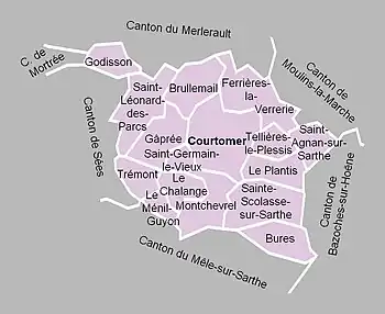 Les anciennes communes suivantes étaient incluses dans le canton de Courtomer[7] :