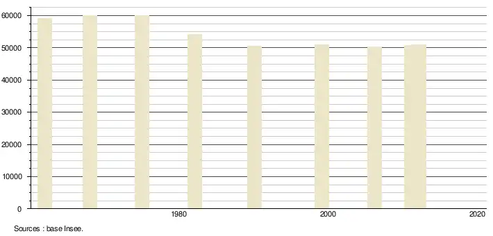 - Population municipale légale en vigueur au 1er janvier 2024, millésimée 2021, définie dans les limites territoriales en vigueur au 1er janvier 2023, date de référence statistique : 1er janvier 2021.