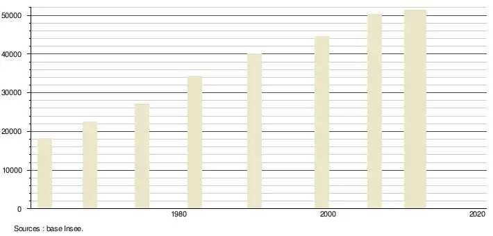 - Population municipale légale en vigueur au 1er janvier 2024, millésimée 2021, définie dans les limites territoriales en vigueur au 1er janvier 2023, date de référence statistique : 1er janvier 2021.