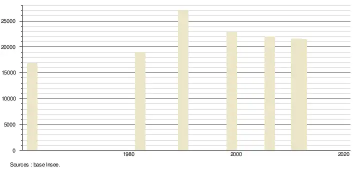 - Population municipale légale en vigueur au 1er janvier 2024, millésimée 2021, définie dans les limites territoriales en vigueur au 1er janvier 2023, date de référence statistique : 1er janvier 2021.
