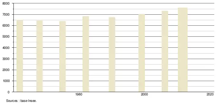 - Population municipale légale en vigueur au 1er janvier 2024, millésimée 2021, définie dans les limites territoriales en vigueur au 1er janvier 2023, date de référence statistique : 1er janvier 2021.