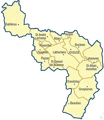 Situation du canton de Joyeuse dans le département de Ardèche. | |