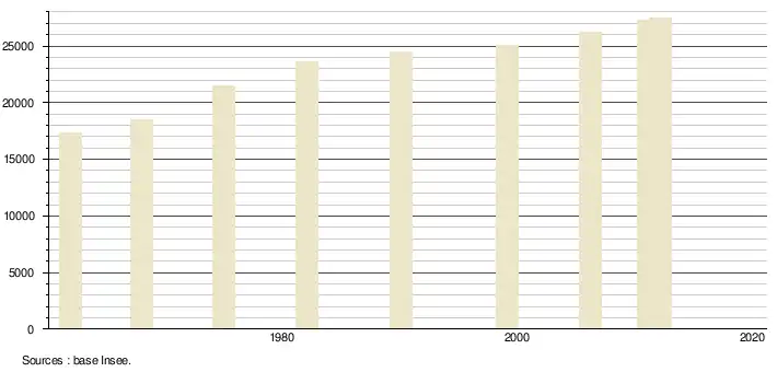 - Population municipale légale en vigueur au 1er janvier 2024, millésimée 2021, définie dans les limites territoriales en vigueur au 1er janvier 2023, date de référence statistique : 1er janvier 2021.