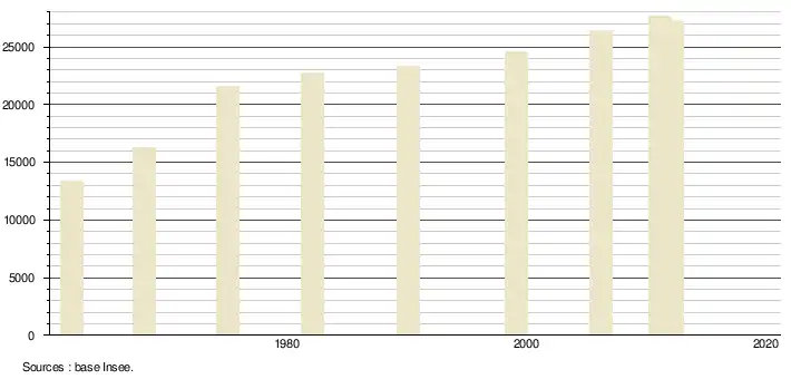 - Population municipale légale en vigueur au 1er janvier 2024, millésimée 2021, définie dans les limites territoriales en vigueur au 1er janvier 2023, date de référence statistique : 1er janvier 2021.