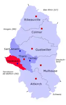 | Arrondissement(s) | Altkirch (45) Thann-Guebwiller (17) |