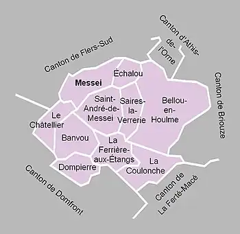 À la suite du redécoupage des cantons pour 2015, toutes les communes à l'exception du Châtellier sont rattachées au canton de La Ferté-Macé. Le Châtellier est rattaché au canton de Flers-1.