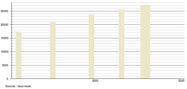 - Population municipale légale en vigueur au 1er janvier 2024, millésimée 2021, définie dans les limites territoriales en vigueur au 1er janvier 2023, date de référence statistique : 1er janvier 2021.