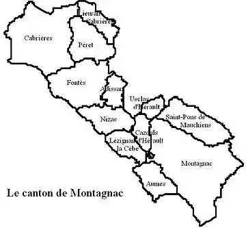 Le canton de Montagnac regroupait douze communes :