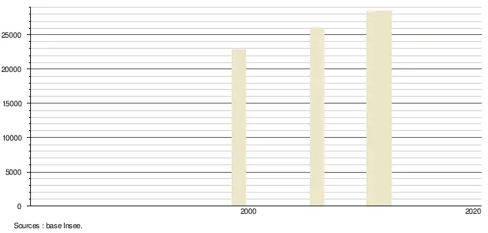 - Population municipale légale en vigueur au 1er janvier 2024, millésimée 2021, définie dans les limites territoriales en vigueur au 1er janvier 2023, date de référence statistique : 1er janvier 2021.