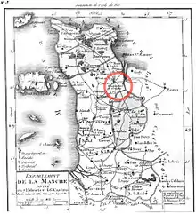 Localisation de l'ancien canton de Montmartin-en-Graignes sur la carte du nouveau département de la Manche en 1792.