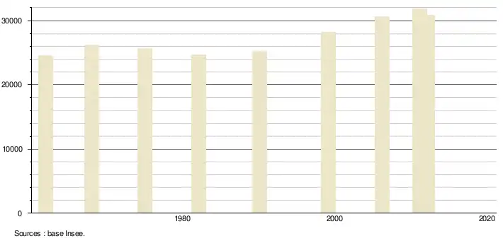 - Population municipale légale en vigueur au 1er janvier 2024, millésimée 2021, définie dans les limites territoriales en vigueur au 1er janvier 2023, date de référence statistique : 1er janvier 2021.
