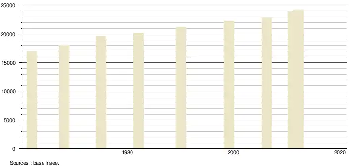 - Population municipale légale en vigueur au 1er janvier 2024, millésimée 2021, définie dans les limites territoriales en vigueur au 1er janvier 2023, date de référence statistique : 1er janvier 2021.