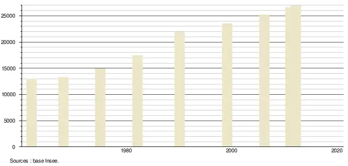 - Population municipale légale en vigueur au 1er janvier 2024, millésimée 2021, définie dans les limites territoriales en vigueur au 1er janvier 2023, date de référence statistique : 1er janvier 2021.
