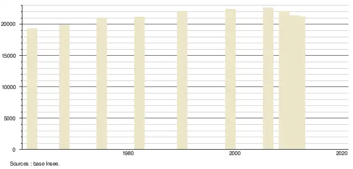 - Population municipale légale en vigueur au 1er janvier 2024, millésimée 2021, définie dans les limites territoriales en vigueur au 1er janvier 2023, date de référence statistique : 1er janvier 2021.