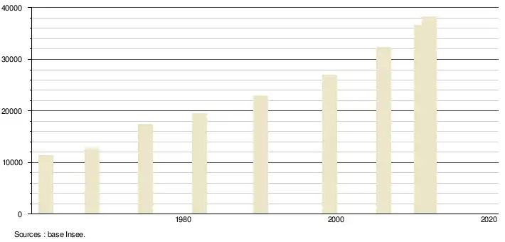 - Population municipale légale en vigueur au 1er janvier 2024, millésimée 2021, définie dans les limites territoriales en vigueur au 1er janvier 2023, date de référence statistique : 1er janvier 2021.