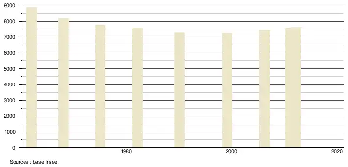 - Population municipale légale en vigueur au 1er janvier 2024, millésimée 2021, définie dans les limites territoriales en vigueur au 1er janvier 2023, date de référence statistique : 1er janvier 2021.